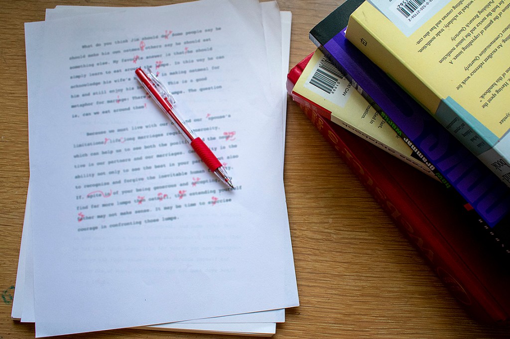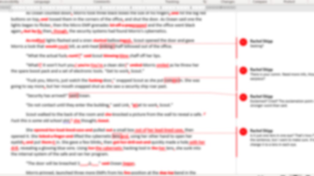 This is what the document looks like when I’m finished with it. I’ve blurred the words here to protect the author, but you can see there’s a lot of red. Don’t let that intimidate you.