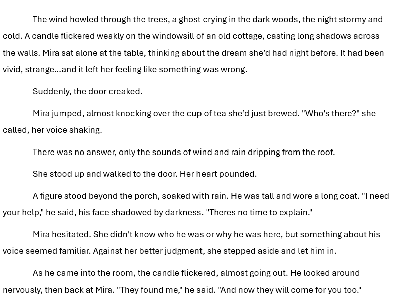 Thousands of editors have tried to explain the difference between the levels of editing. I’ve even done it myself, but I’ve long wanted to really show the differences between line editing, copyediting, and proofreading. (Developmental editing is a completely different beast—you can learn a little about it in this explanation of manuscript evaluations.) So I asked ChatGPT to write a story for me. It’s one of the few legitimate uses of generative AI I can justify—I knew it would be poorly written and would need work, and sharing it doesn’t violate the privacy of any of the authors I work with.